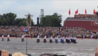 外军方队、代表队近千人规模参加分列式,每个方队正式参阅人数在75人左右,每个代表队在7人左右,方队和代表队均位于我地面徒步方队和装备方队之间。各国军队参阅序列,按照国际惯例,原则上按所在国的英文首字母排序。目前,17个来华参阅的外军方队、代表队全部进驻阅兵训练基地,并于20日、23日分别参加阅兵合练和预演,演练整体效果较好。