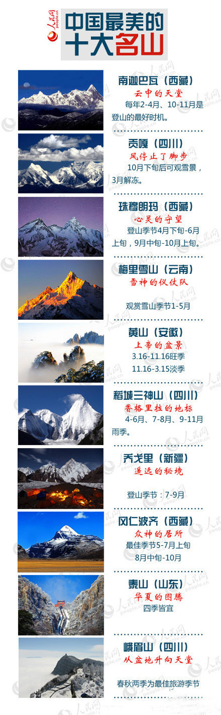一份榜单告诉你中国最美的地方在哪里:十大名山、五大湖泊、七大丹霞、十大峡谷、五大沙漠、六大瀑布……绝对值得你跨过海、越过山,去看看!